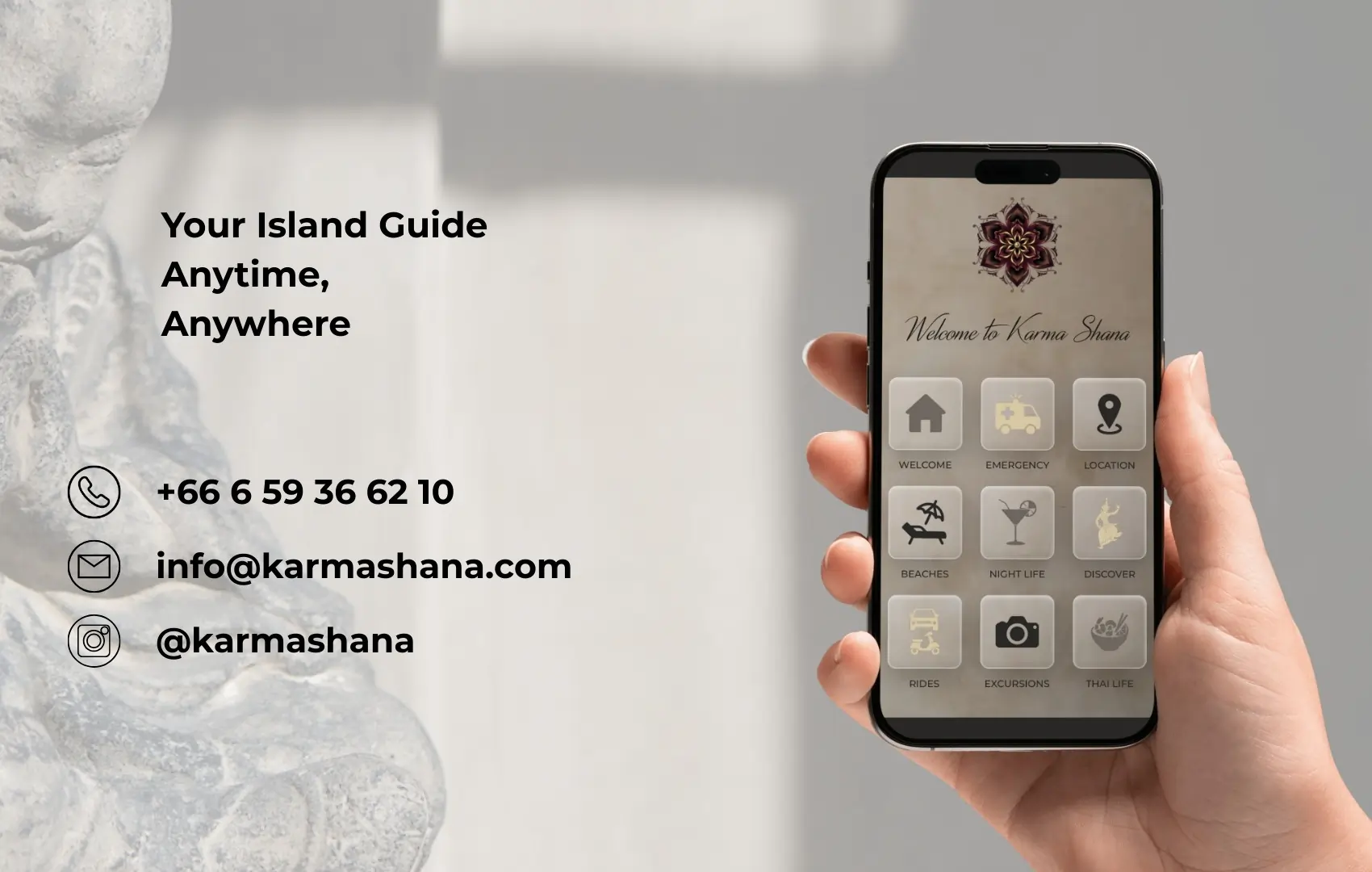 Each villa at Karma Shana features its own personalized QR code, giving you instant access to our concierge services, tailored information, and exclusive offers — your dedicated companion throughout your stay.